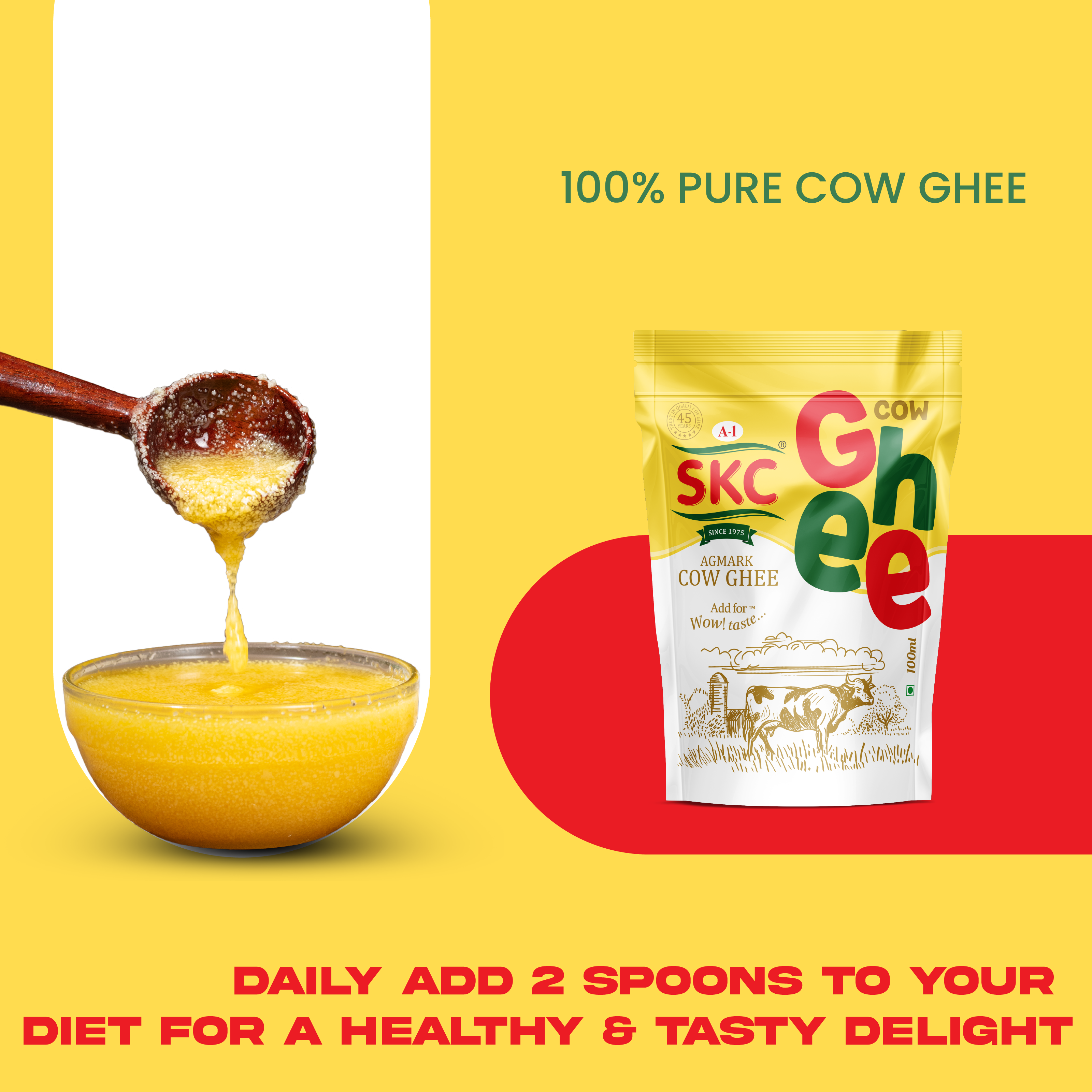 A legacy brand since 1975, A1 SKC Ghee is crafted with pure excellence. It reflects the dedication of 3 generations in perfecting the art of producing pure cow ghee, following traditional methods.