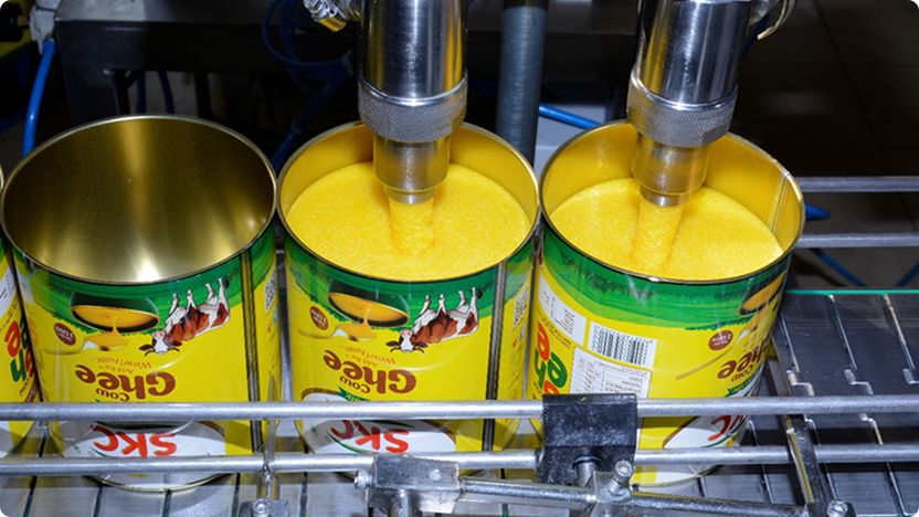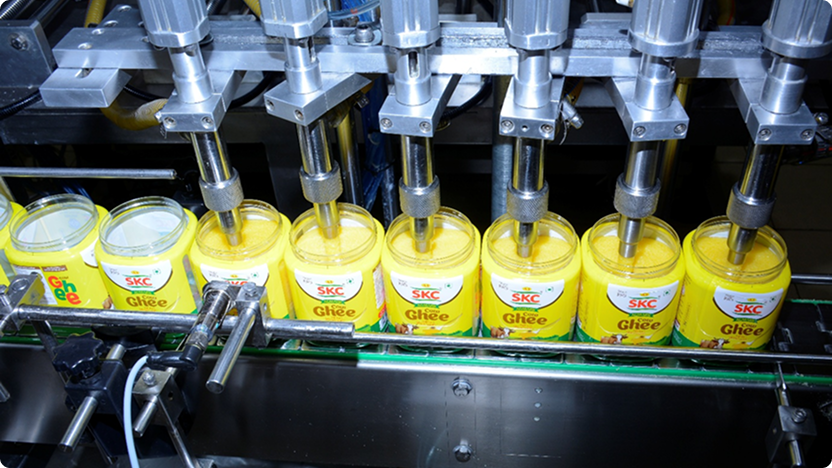We use own company-produced, gas chromatography (GC) tested butter, verified in our in-house lab. This ensures consistent quality & purity for SKC Ghee.